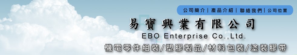 易寶興業有限公司專營機電零件組裝、塑膠製品、材料包裝、塗裝膠帶等等。 另外可整合上游零件製造,加工生產到出貨,依客戶需求另組生產線。 誠信專業是公司最大的準則,也期望業者之客戶能收到優質產品。 我們積極追求產品創新、耐用,並永續經營的理念及服務熱忱,經歷多年的專業生產歷練,為客戶提供最佳品質的產品,最具競爭力的價位與誠懇的服務,技術專精品質卓越,符合客戶的要求。 易寶興業通過ISO 9001:2008認證